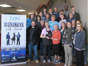 (JamestownChamber) The Young Professionals of Jamestown recently presented a Business of the Month Award to The Apple Basket Café for their outstanding customer service and continued commitment to the community.