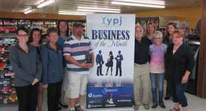 Jamestown (Chamber) Members of the chamber Young Professionals of Jamestown and the chamber Ambassadors recently presented the Business of the Month Award to Neighborhood Grocery and Gas station of Jamestown for their outstanding customer service and continued commitment to the community. This business is located at 1014 17th Street SW in Jamestown and they can be reached at 701-952-0222. Owner, Jason Babcock was joined by employees Sherri Babcock, Kathy Greer, Becky Buchholz, Sheila Salberg, Amanda Erickson and Keith Schoen to help him celebrate receiving this award.