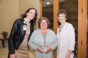 Mary says, JRMC selected Hust because for the past four years she volunteered at the surgery desk at 6 a.m. each Monday. She started each shift with a smile and compassion for the patients and their families, adding, “Kay has made such a difference in patient care donating over 700 hours of her time volunteering.”
