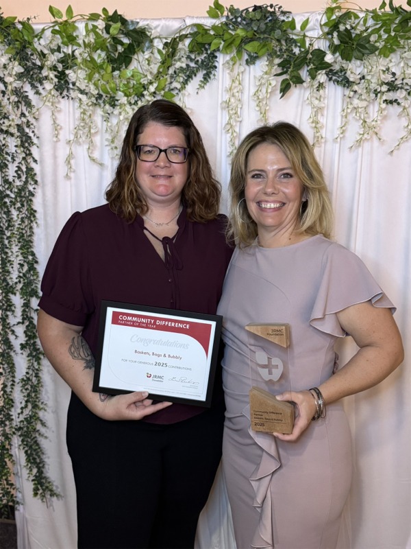 Community Difference Partner of the Year: This spotlights an organization or community group who has gone above and beyond to support JRMC. The Foundation named Tara Kapp and Nicole Lemieux the Community Difference Partner of the Year for their work with Baskets, Bags & Bubbly. Deb Lee established the event in 2005, and since then it has grown tremendously, raising more than $50,000 in support of local cancer causes, including JRMC’s No Excuses program.