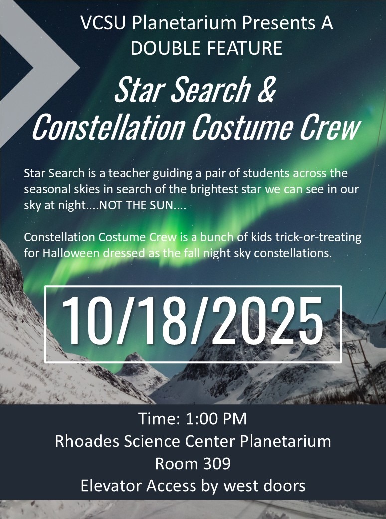 The afternoon begins at 1:00 p.m. with Star Search, a brand-new program following a teacher and two students as they explore the seasonal skies in search of the brightest star visible at night.
