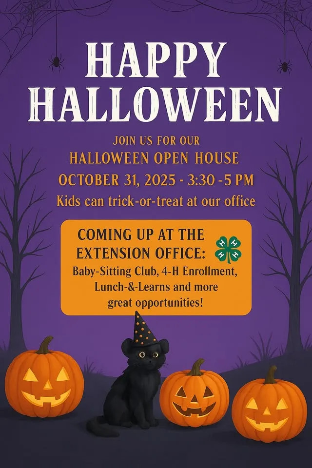 Festivities begin in the afternoon with the NDSU Stutsman County Extension Halloween Open House, running from 3:30 to 5:00 p.m. Families can stop by for treats and activities before heading to more events around town.
