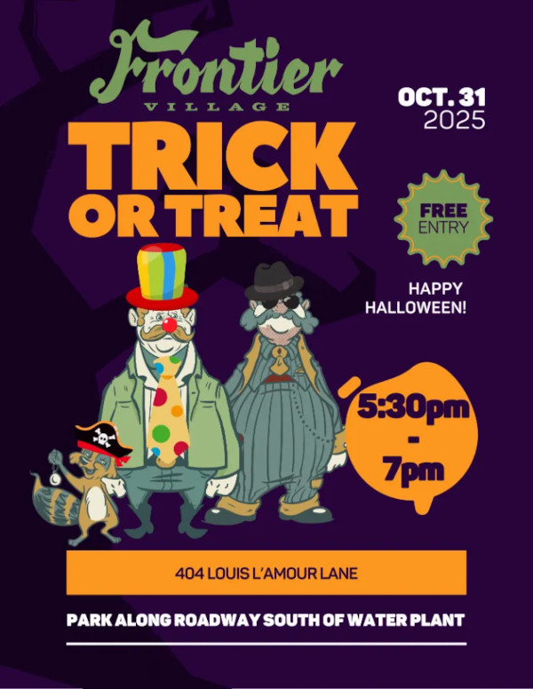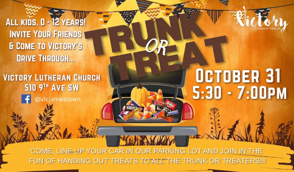 Later in the evening, Victory Lutheran Church will host its Trunk or Treat from 5:30 to 7:30 p.m., while the Frontier Village Trick-or-Treat runs from 5:30 to 7:00 p.m.