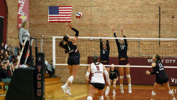 The first set featured back-and-forth action with 15 ties and four lead changes. Northern started the set with a 5-3 lead, where the Vikings would mount a four-point run, claiming a 7-6 lead courtesy of a kill by Rosie Anderson, Eden Carrier, and Macy Fridgen. Annkia Pulju tallied an ace to cap off the run. From VCSU 7-6, the score stayed within 1 point until 17-17, where Northern would score three straight and hold that lead for the remainder of the set, finishing 25-22.
