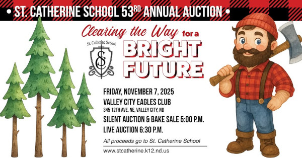 Valley City – St. Catherine School will host its 53rd Annual Fall Auction on Friday, November 7, at the Valley City Eagles Club. This year’s theme, “Clearing the Way for a Bright Future,” celebrates more than five decades of community spirit and support for local Catholic education.