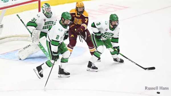 UND pushed hard for the equalizer, but the Golden Gophers weathered the storm in the opening half of the final stanza before adding a trio of insurance tallies to close out the 5-1 win and secure the series split.