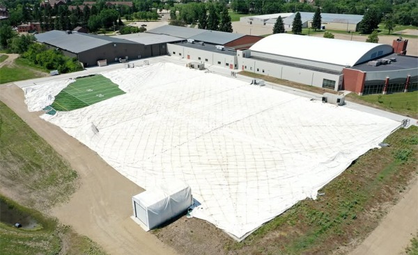 Jamestown ND (UJ) – The University of Jamestown is preparing to raise the new Nelson Family Bubble over the coming days. Work begins today (11/12) at 2 pm as crews start spreading the bubble material across the turf field, with additional setup expected to continue tomorrow afternoon. Inflation of the structure is anticipated for November 17 or 18.
