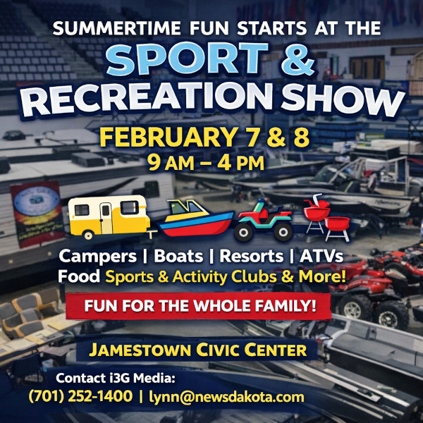 The Sport and Recreation Show will take place on February 7 and 8 from 9:00 am to 4:00 pm at the Jamestown Civic Center, bringing summer excitement to the community with an event focused on outdoor fun, family activities, and North Dakota adventures. The show will feature campers, boats, resorts, ATVs, sports clubs, food vendors, and many other attractions designed to help families plan the perfect summer.