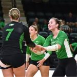 Omaha NE (UND) – The UND volleyball team fell in three sets to Omaha (25-20,...