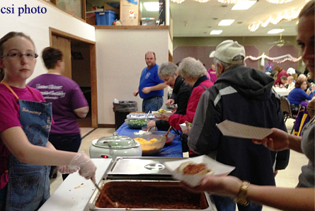 A large crowd filled the KC Hall, with 90 guests participating in the silent auction. Potatos with chili, cheese, sour cream, and salsa were served. A wide selection of desserts and cookies were donated, and were quickly consumed. Front page photo of Ryder by Chris Sheppard.
