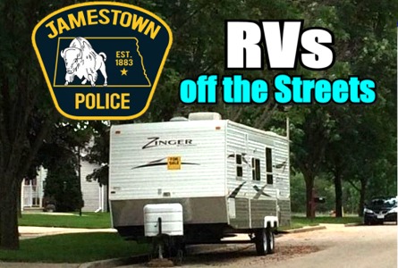 Jamestown (CSi) The Police remind residents that a city ordinance bans parking of all motor homes, camper trailers, RVs or trailers of any type from parking on city streets and takes effect Nov 1st each year.