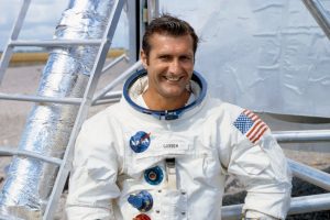 He was a test pilot chosen in NASA’s third group of astronauts in 1963 and flew on Gemini 11 in 1966, walking in space twice. During Apollo 12 in November 1969, Gordon circled the moon in the command module “Yankee Clipper” while Alan Bean and Charles Conrad walked on the lunar surface.