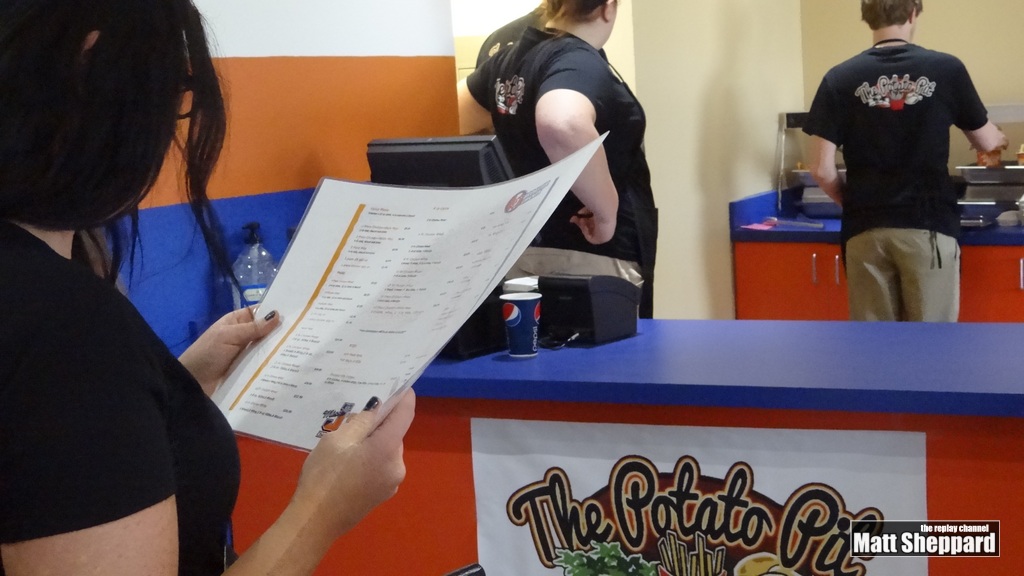 Located at the former Sara Lee Bread store (Master Bakery Outlet) are: Cherry Berry, along with Miss J’s Chicken and Ribs, The Potato Pit, and Java Dave’s. Cherry Berry has a variety of frozen yogurt flavors. Ms. J’s Chicken and Ribs offers broasted chicken and barbequed ribs. The Potato Pit serves up French fries, jalapeno poppers, and other potato snack foods and Java Dave’s has coffee.