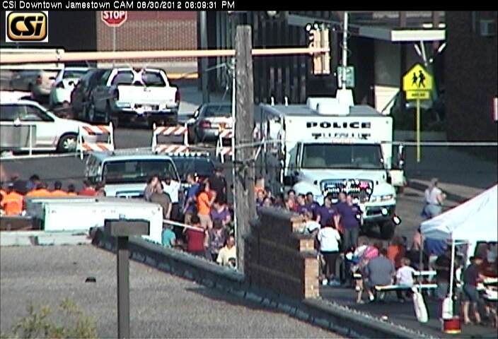 Jamestown, ND (Aug 30, 2012) — The College Community Connection Block Party, Thursday evening, featured 95 booths, with an estimated 3,000 people visiting booths and getting aquatinted with Jamestown College freshman, and upper class students.