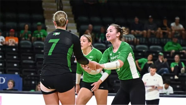 Omaha NE (UND) – The UND volleyball team fell in three sets to Omaha (25-20, 25-23, 25-14) on Thursday night from Baxter Arena. UND falls to 4-10 and 1-2 in conference play, while Omaha improves to 4-8 and 1-2 in Summit League play.