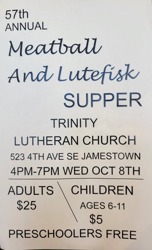 Trinity Lutheran Church will host its annual Meatball and Lutefisk Supper on Wednesday, October 8 from 4 to 7 p.m. at 523 4th Ave. SE, Jamestown.