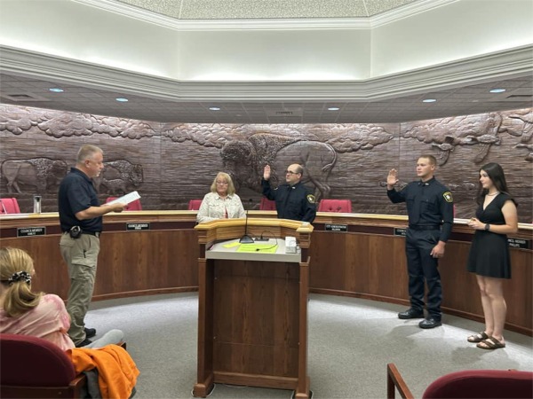 Jamestown (JPD) – September was a busy month for the Jamestown Police Department as five new officers were sworn in. Congratulations to Officer Casey Barch, Officer Braeden Olauson, Officer Tarwo Cooper, Officer Christopher Nelson, and Officer Gavin Smith. Welcome to Jamestown!