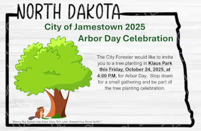 Jamestown – The City Forester would like to invite you to a tree planting in Klaus Park this Friday, October 24 at 4:00pm for Arbor Day 2025.