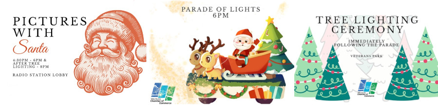 At 6:00 p.m., the holiday magic moves outdoors as the Parade of Lights makes its way down Central Avenue, filling the street with illuminated floats and glowing decorations. Immediately following the parade, the community will gather at Veterans Park for the annual Tree Lighting Ceremony, a cherished tradition that officially welcomes the season.