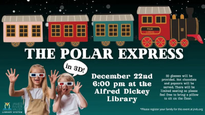Jamestown – Families are invited to experience a holiday favorite in a whole new way when “The Polar Express” arrives in 3D at the Alfred Dickey Library on Monday, December 22, at 6:00 p.m.