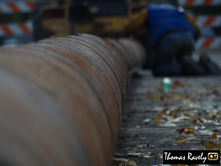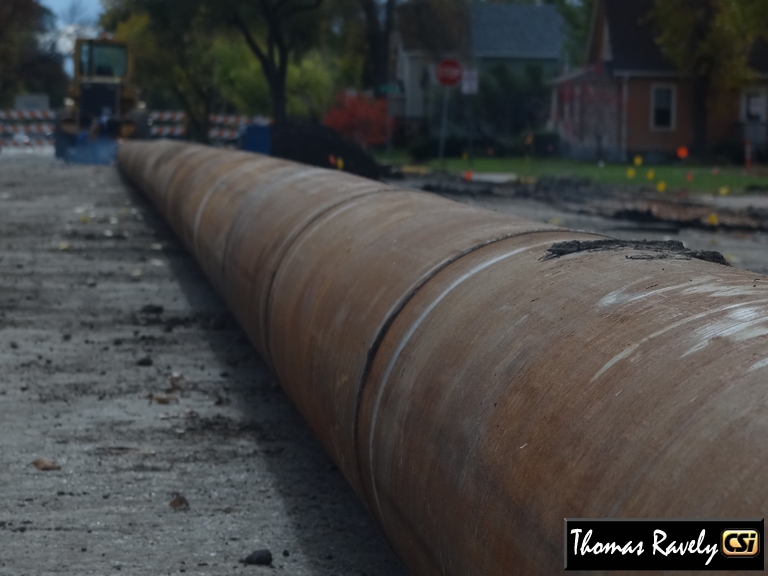 The nearly block long pipe will be placed under the tracks, and the new force main will be installed inside the steel casing. That should occur during the next week, weather permitting.