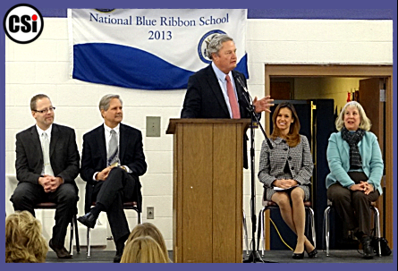 Jamestown (CSi) Gov. Jack Dalrymple today celebrated with William S. Gussner Elementary School in Jamestown for earning a 2013 National Blue Ribbon School designation. Three North Dakota schools were named National Blue Ribbon School Awardees this year, Gussner Elementary School, Edgeley Public School and Wyndmere Elementary School.
