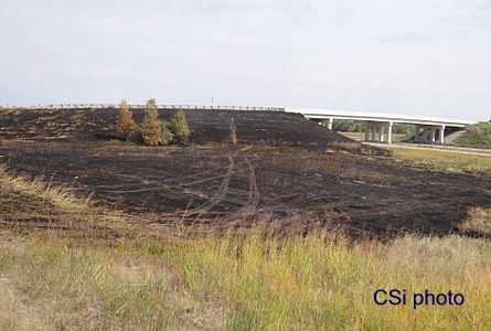 An area of grass was burned on the northside of the interstate, between the ramp and the interstate.