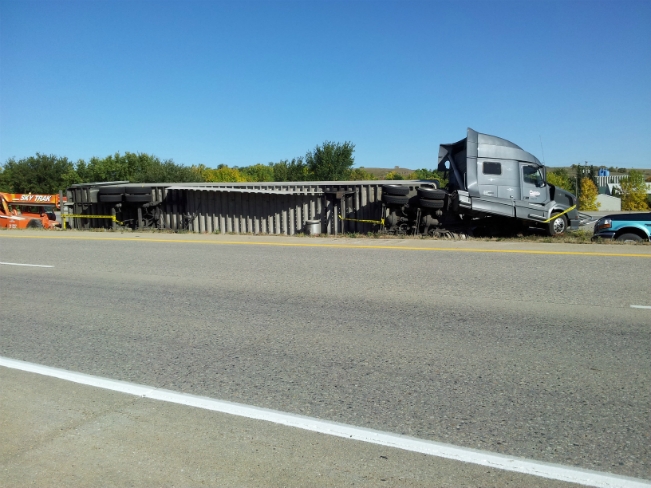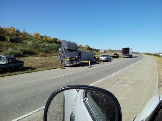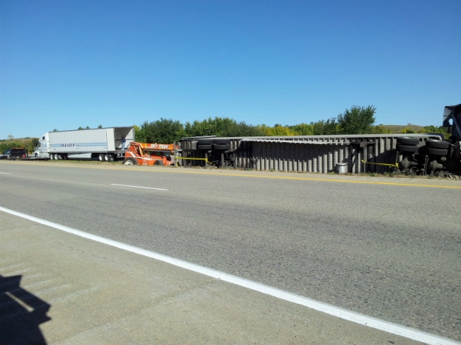 Valley City, ND (KCSi-T.V. News) — The North Dakota Highway Patrol is investigation a semi accident, that occurred Friday morning (Sept 14, 2012) about two O’Clock. Photos below for CSiNewsNOW by Brian Lang