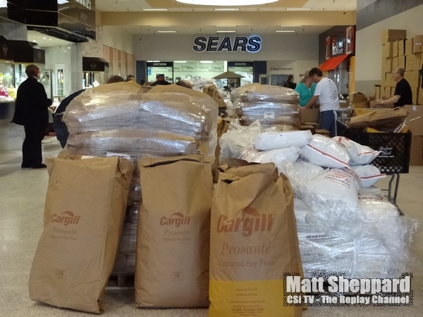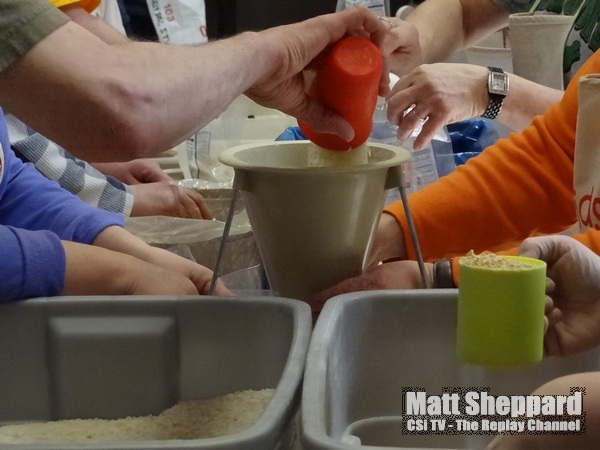 Packaged meals included rice, soy, vegetables and vitamins, put together assembly line style in bags that were then boxed. The meals are water activated to the dried ingredients, which are then boiled and ready to eat.