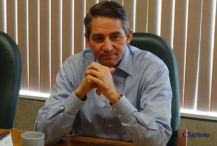 Jamestown, ND (KCSi-T.V. News )Oct 29, 2012 — North Dakota Lt. Governor Drew Wrigley visited Jamestown Monday with stops at Cherrington and Cavendish Farms.