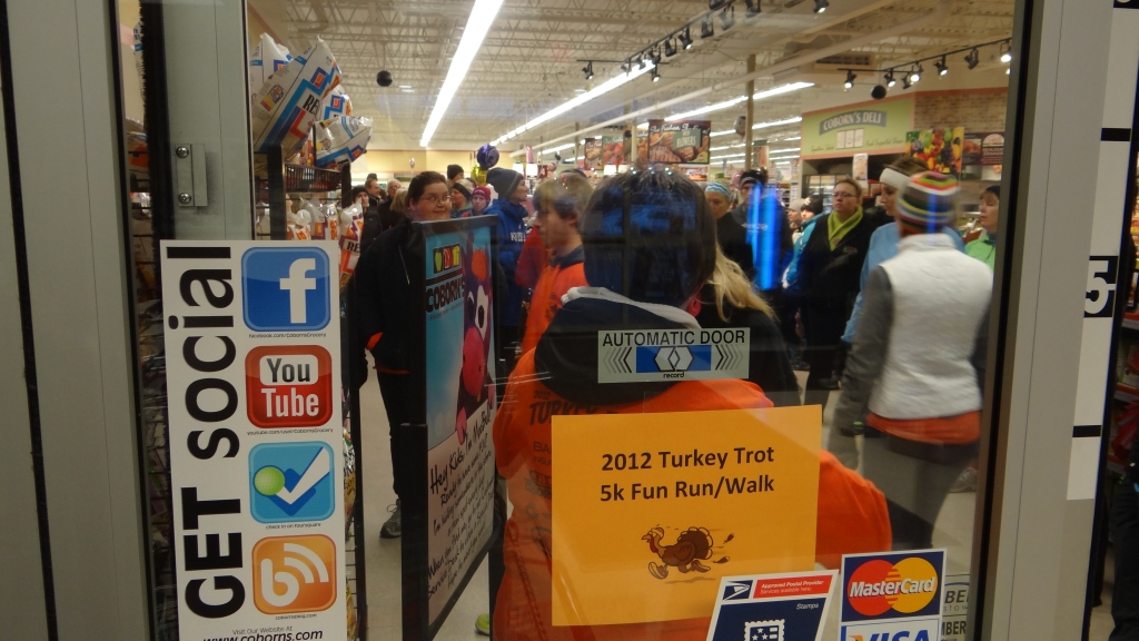 T-shirt pickup and race day registration opens at 8-a.m. on Thanksgiving Day, at Coborn’s in Jamestown, where the event starts. (Register by Nov 10, 2012 to guarantee the race day T-shirt pickup.)