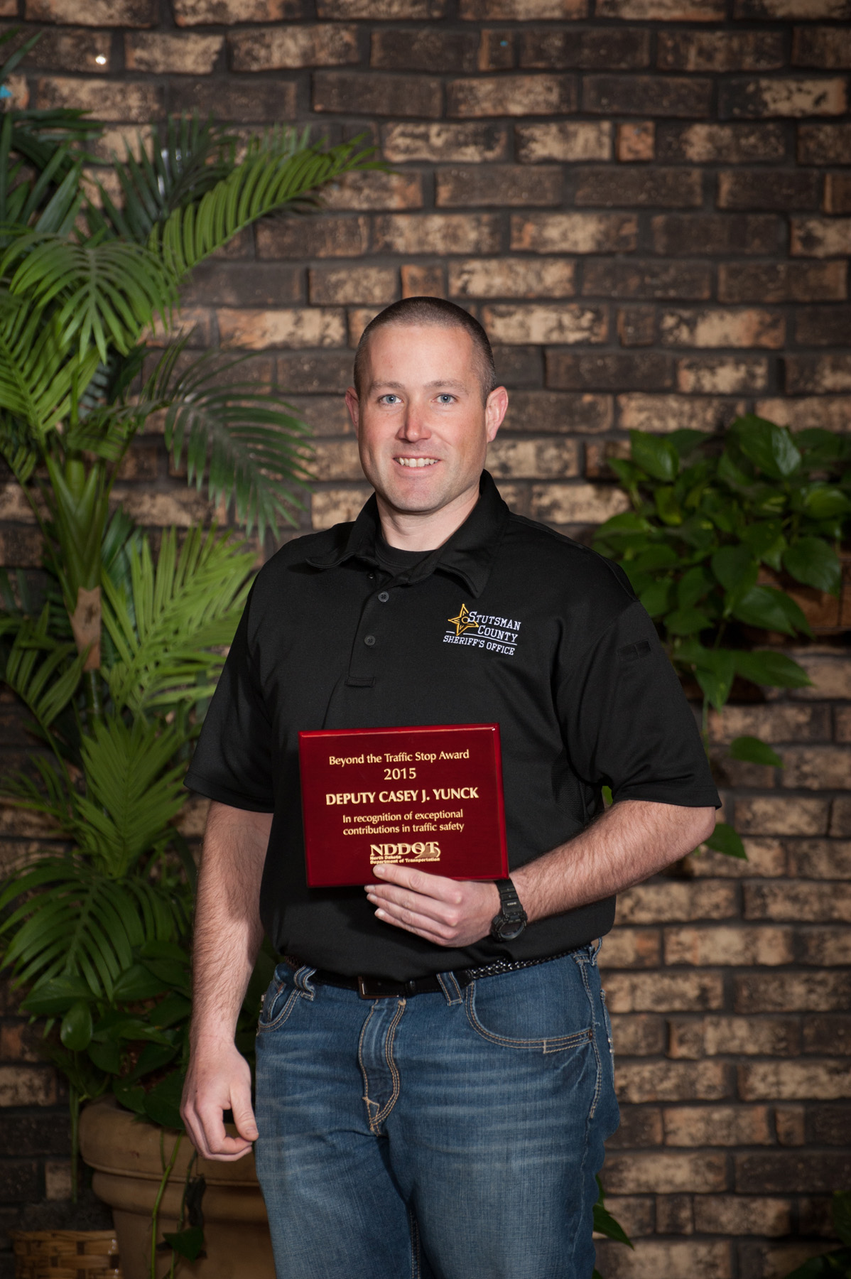 Bismarck (CSi) Deputy Casey Yunck of the Stutsman County Sheriff’s Department received the Beyond the Traffic Stop award last week during the North Dakota Department of Transportation (NDDOT) Annual Traffic Safety Partner Summit in Bismarck.