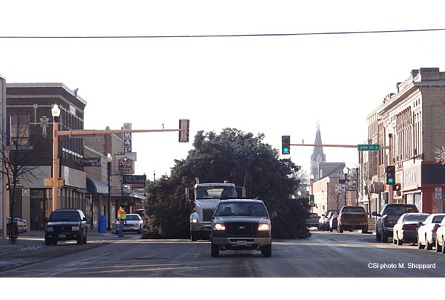 The tree’s transportation and crane were donated by Schebenske and Sons of Jamestown.