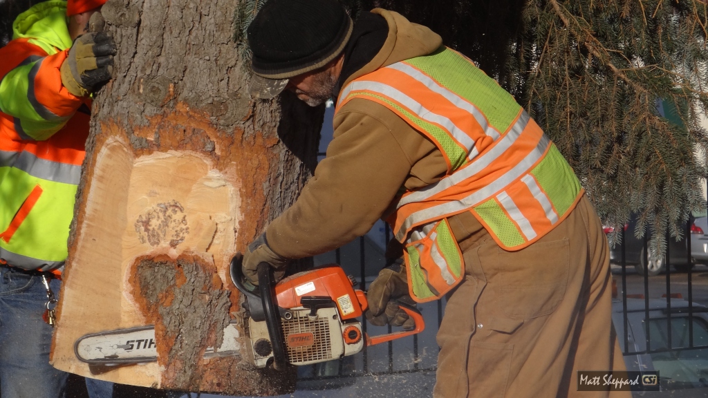 A crowd of 75 joined City Forester Vern Quam and MSDA Charlie Kourajian in officially lighting the 2012 Christmas Tree on the plaza of the Civic Center.