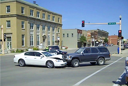 A two vehicle crash occurred just prior to 1pm, Friday, July 20, 2012, at about 12:45 p.m., in downtown Jamestown at the corner of 1Ave S & 3rd Street S.